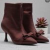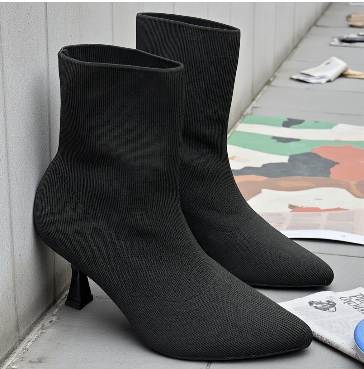 Botín medio de tela elástica tipo «calcetín» con tacón medio muy cómodo.