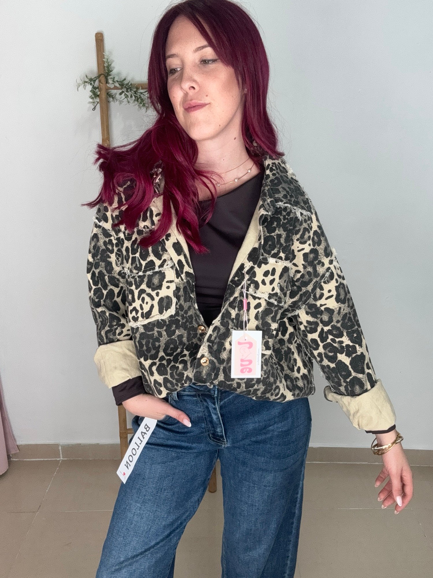 Sobre camisa gordita de estampado de leopardo en tonos grises. Talla única perfecta desde la 36 a la 44.