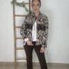 Chaqueta estilo vaquera en color chocolate con bordados en color beige. Abotonada en el centro y detalle de conchas en la zona del pecho.