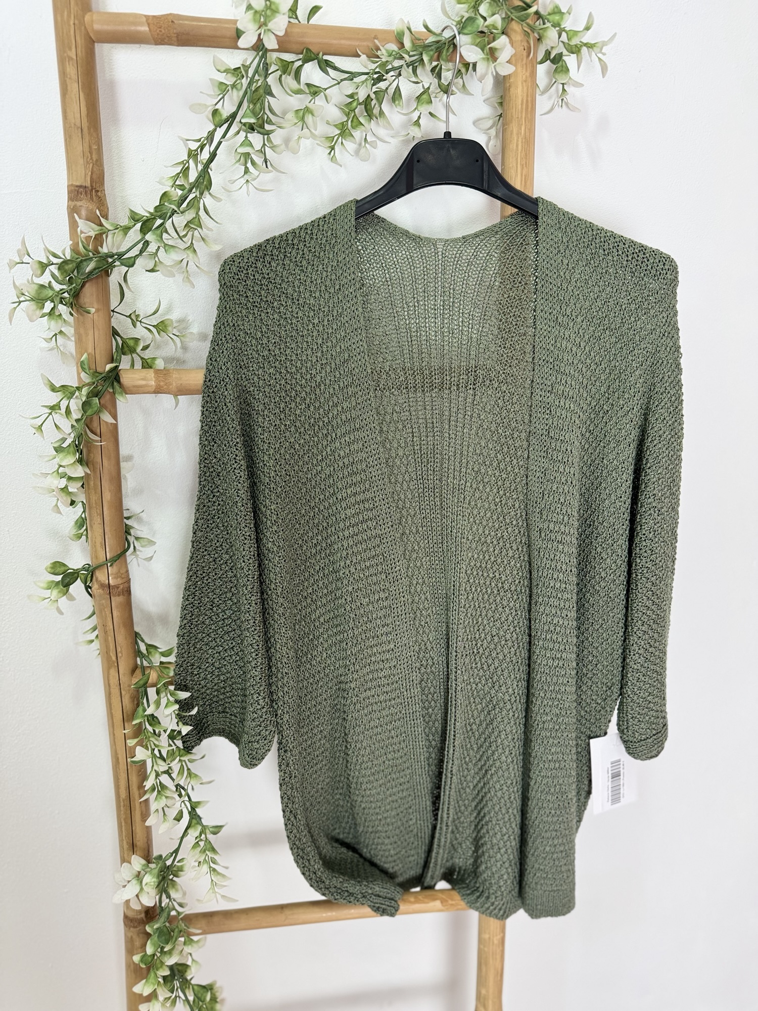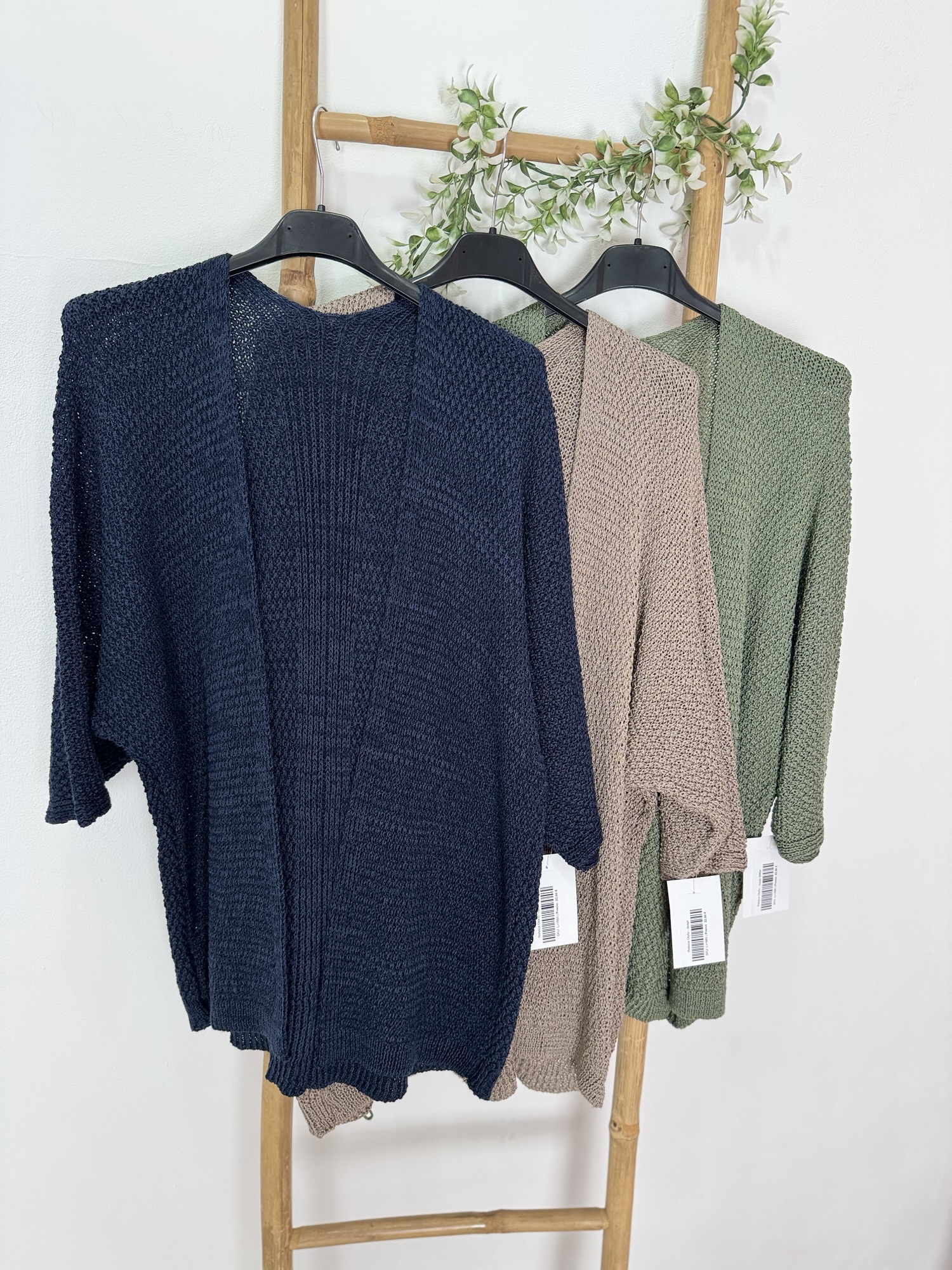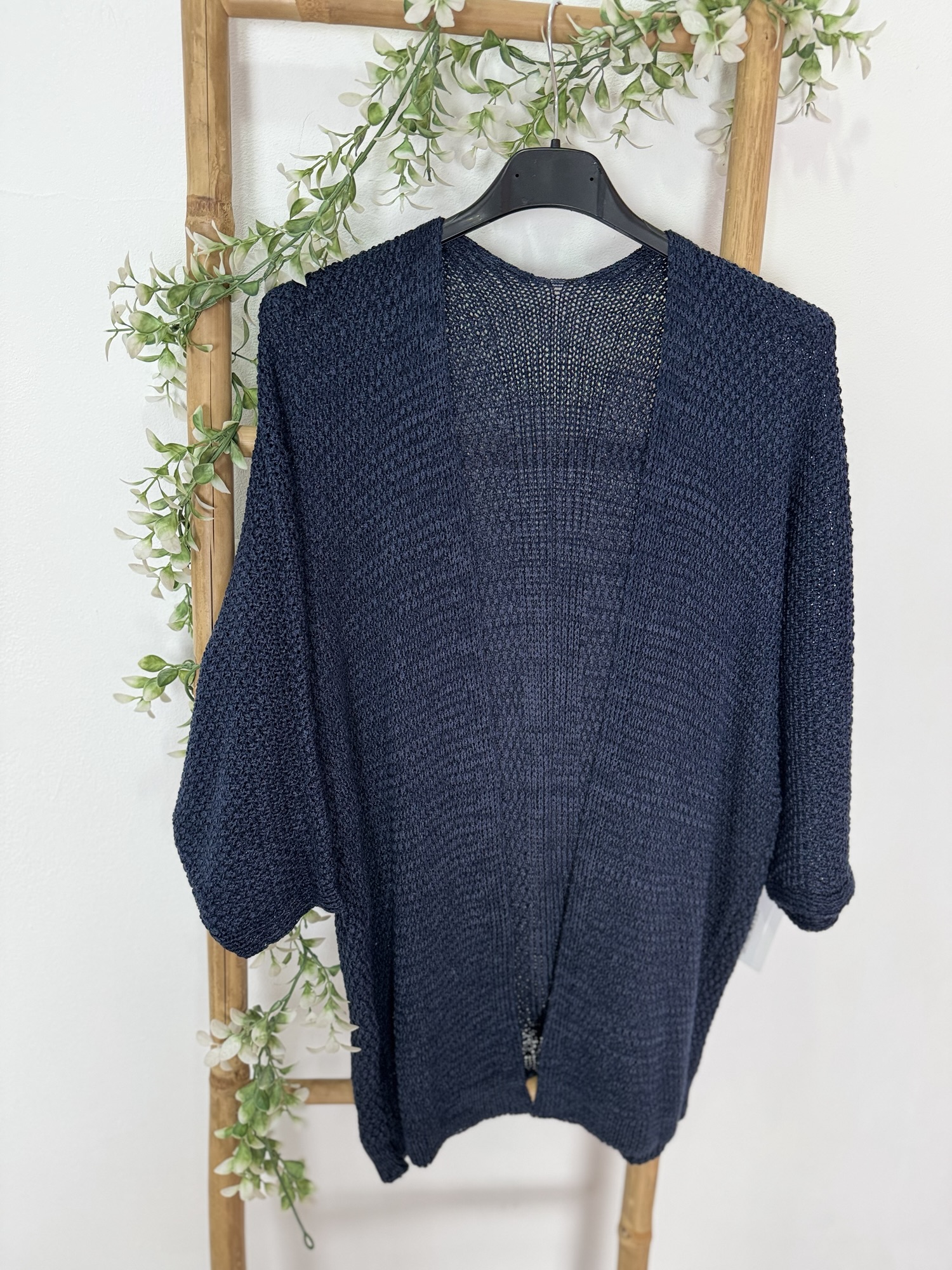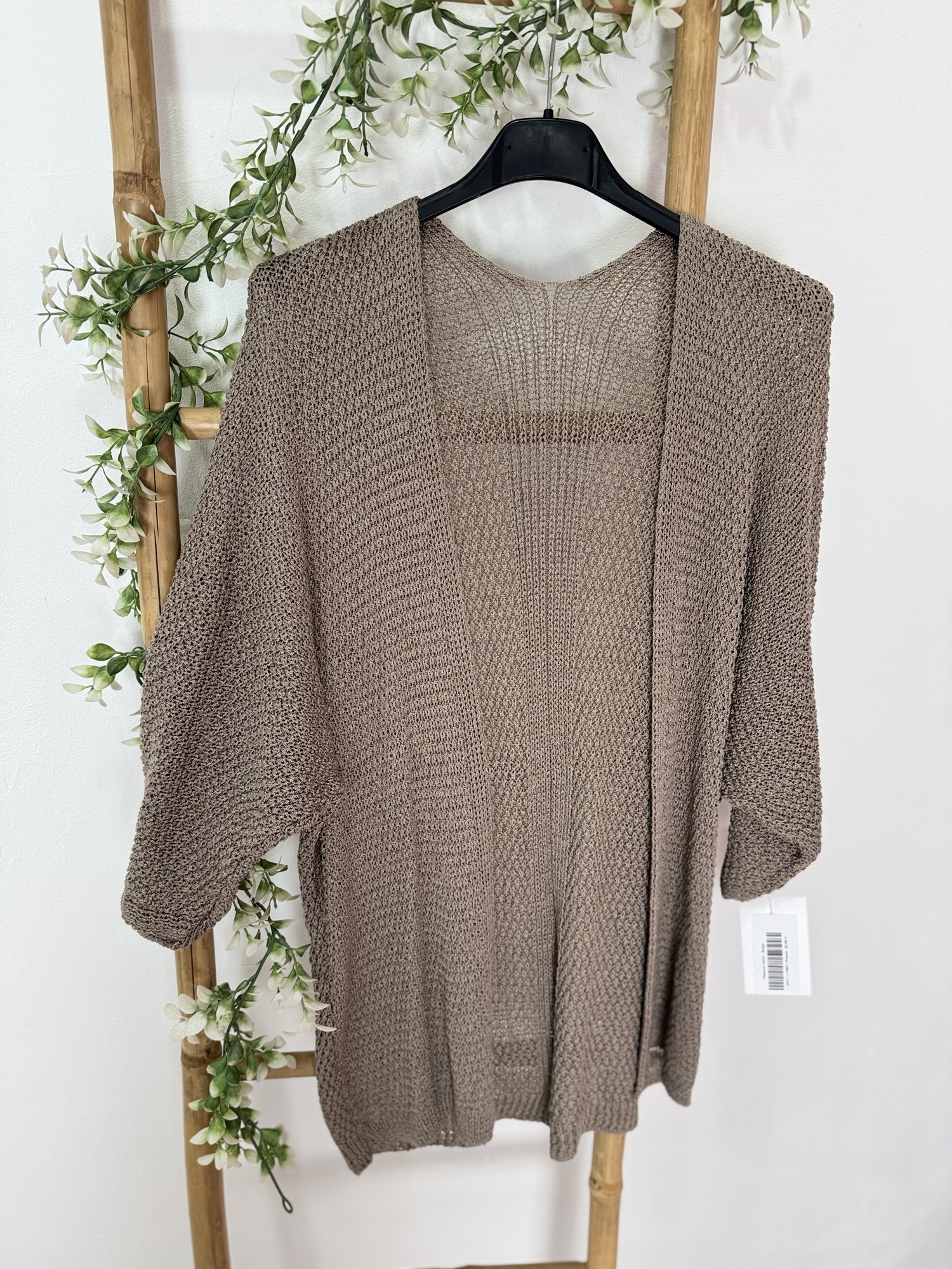 Rebeca de manga al codo de hilo, ideal para entre tiempo. Talla única que al ir abierta da perfectamente desde la 34 a la 44 / 46