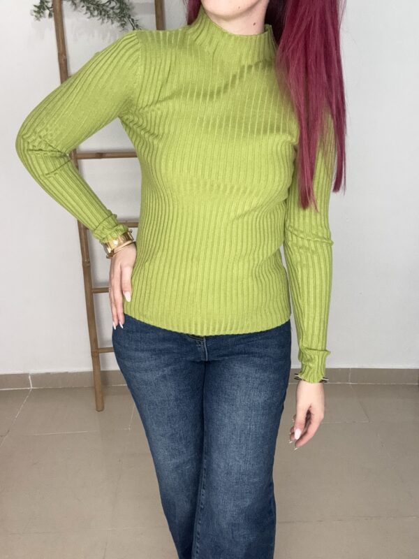 Suéter de canalé muy suave y gustoso con cuello perkin.